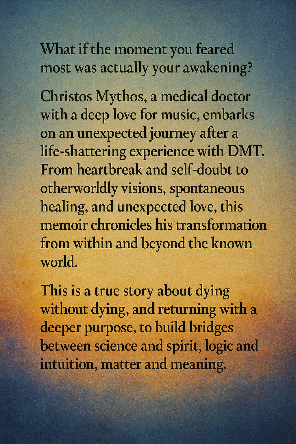The Day I Learned To Die A personal account exploring consciousness, identity, and the nature of reality. Buy on Amazon (Kindle & Paperback) Buy on Amazon (Kindle & Paperback) Download Illustrated Version (PDF) Download Illustrated Version (PDF)